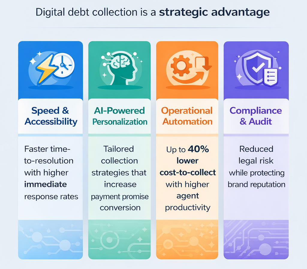 Digital debt collection is more than a technological upgrade; it is a strategic imperative. For banks, NBFCs, and fintech lenders, the platform offers an unparalleled combination of benefits: